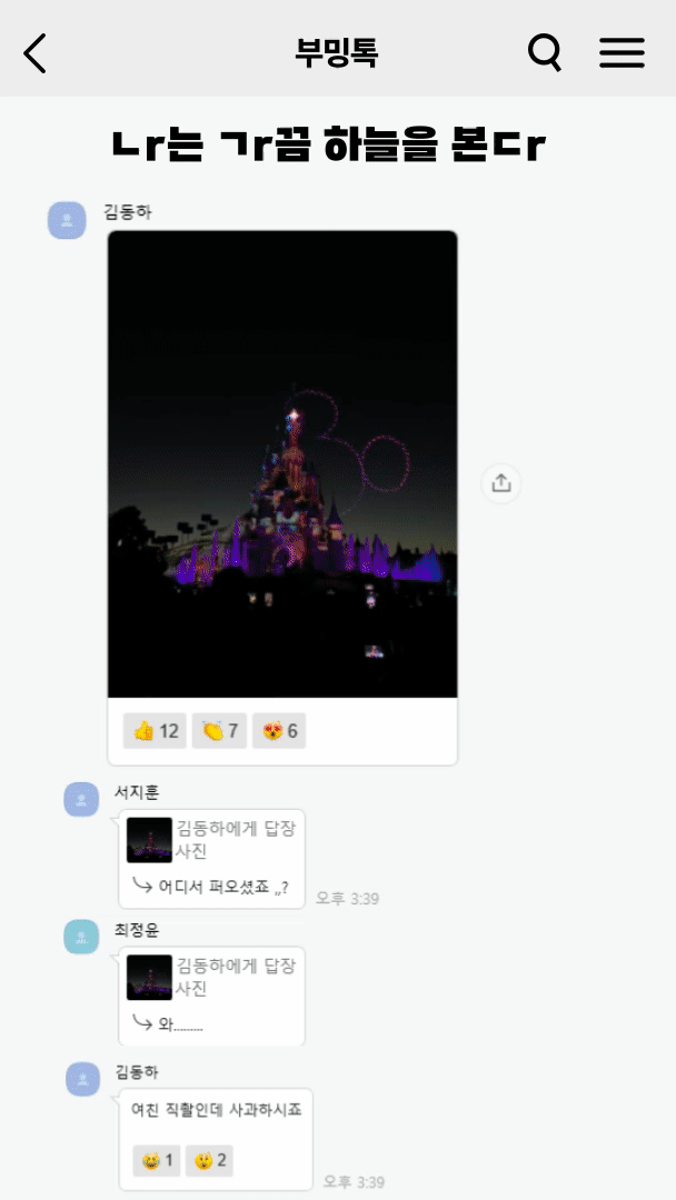 부스터분들은 이벤트와 사진에 진심이어서, 사내 소통채널인 ‘부밍톡’이 폭발했습니다.